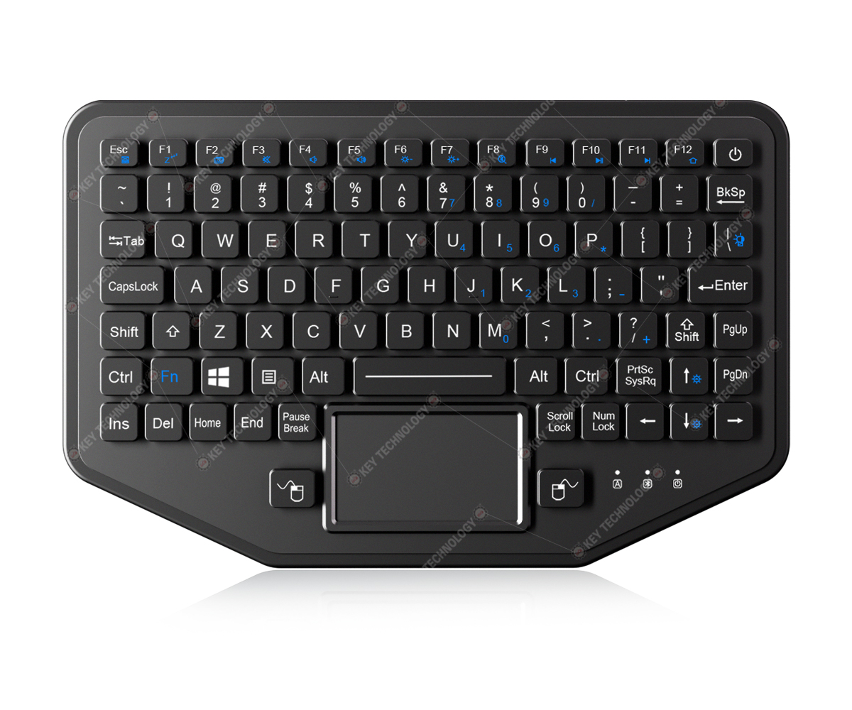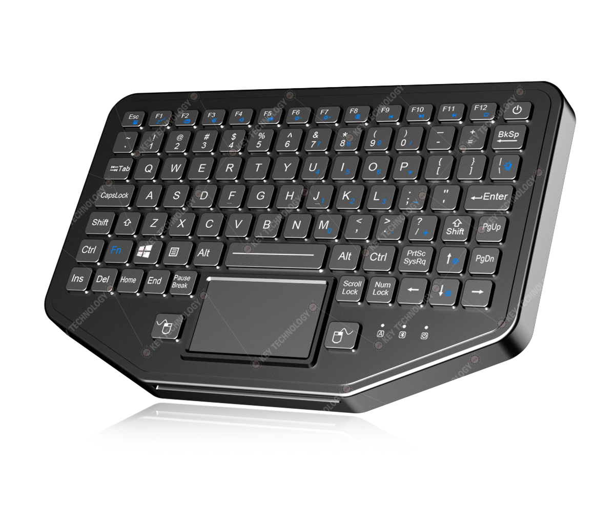 MECHANICAL DATA | Key | 92 keys (including 2 mouse buttons) | Key technology | Carbon contact + FPC carbon-on-gold key switch technology | Key travel | 1.50mm±0.10mm | Switch life | more than 5 million of operations | Actuation Force | 1.2N±0.2N | ELECTRICAL DATA | Supply Voltage | DC +5V±5% | Current Rating | ≤30mA when backlight is off, ≤300mA with backlight on | EMC Standard | EN 55032:2015 EN 55035:2017 | Lifespan | > 5 years | Interface | Wireless version | OS | All Windows, Linux, Unix, Mac OSX, Vxworks, Android, (U-cos-To be confirmed). | ENVIRONMENTAL ADAPTABILITY | Operating temperature | -40℃ to + 75℃ | Storage temperature | -50℃ to + 85℃ | Humidity test | 1. Test temperature: 30℃~60℃, 2. Test humidity: 95%RH, 3. Test period: 24h as a cycle, 10 cycles, total 240h | Atmospheric pressure | 57kPa~106kPa | Vibration test | 0~2000Hz, displacement 1mm, acceleration 70m/s² | Shock test | 1. Pulse waveform: post-peak sawtooth wave 2. Peak acceleration: 40g 3. Pulse duration: 11ms 4. Test period: X,Y, Z , 3 times impact to each axial front and back, totally18 times | Temperature shock test | 1. Test temperature: -55℃~75℃ 2. Test period: -55℃ for 2h, 75℃ for 2h, 3 cycles, totally 12h | Fungus test | 1. Test temperature: (30±1) ℃ 2. Relative humidity: (95±5) %RH 3. Test strains: Aspergillus flavus, Aspergillus variegatus, Penicillium cordylus, mucocellus globularis, Aspergillus Niger 4. Test period: 28 days (total 672 hours) | salt spray test | 1. Place the sample into the Salt Spray Corrosion Test Chamber, temperature inside the chamber is 35 ℃; Spray the sample with a NaCl test solution with a concentration of 5 ± 1% and a PH value of 6.6 for 24h at a pressure of 96kPa; Test duration is 24 h. 2. After 24h of spray, dry and store the sample for 24h in an environment with temperature of 23 ℃ and humidity of 50%; 3. 1-2 steps as one cycle, test 2 cycles, total 96 h. 4. After test, exhaust the fog for 10 min, check the sample after cleaning it with flowing water under standard atmospheric conditions. | Rain test | 1. Test procedure: Procedure - rainfall and blowing rain 2. Test direction: keyboard surface 3. Wind velocity: no less than 18 m/s 4. Test duration: 3h | Dust test | 1. Test procedure: Procedure - Dust Blowing 2. Dust content: 10.6g/m³±7g/m³ 3. Firstly conduct dust blowing for 6h under 23°C, then adjust the temperature to 60°C and stabilize for 1h, and then re-conduct dust blowing for 6h. | Transport package drop test | 1. Test procedure: Transport Drop Test 2. Sample state: Weight≤45.4kg, Maximum Size<91.0cm; 3. Drop height: 122cm 4. Drop count: drop to each surface, edge and corner, 26 times of drop totally. | RELIABILITY | RoHS compliant, CE and FCC certified | MIL-STD-810H (high and low wide working temperature, low pressure, humidity, vibration, shock, temperature shock, drop, rain, salt mist, dust, fungus, solar radiation etc.). | Protection Level | IP68 | Key Lifespan | >5 million actuations | MTBF | >20000H | MTTR | <30min | APPLICATION | Vehicle, aerospace, naval, defense, maritime, Radar, console, portable rugged laptop, UAV ground station etc. |